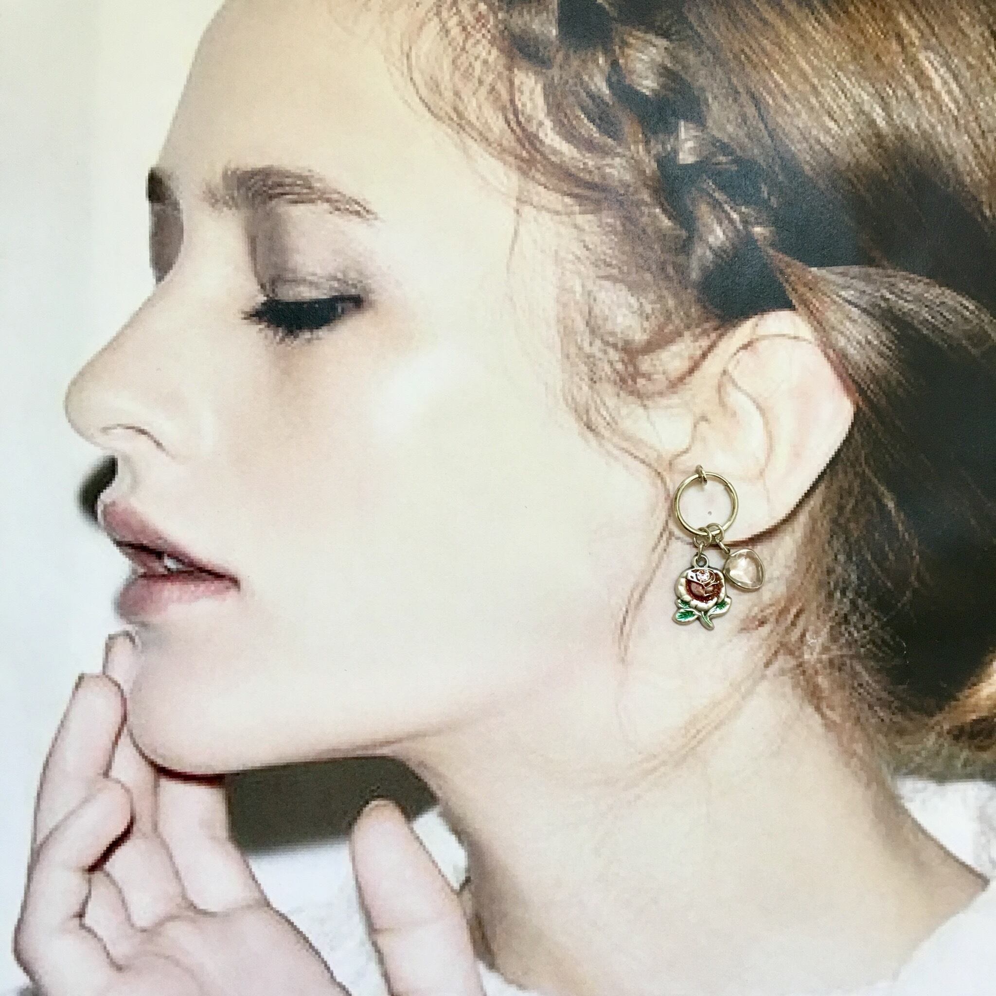 バラの花のモチーフ「不思議のメダイ」の耳飾りです。
