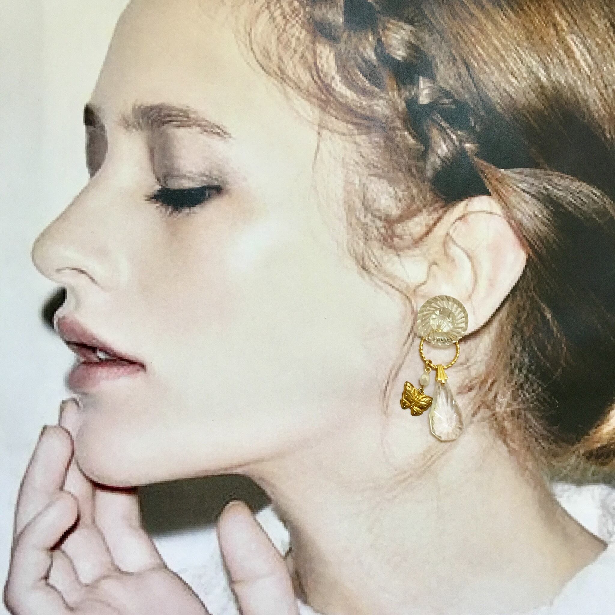 ブラス製の蝶々やアクリルビーズをバランスよく組み合わせました。