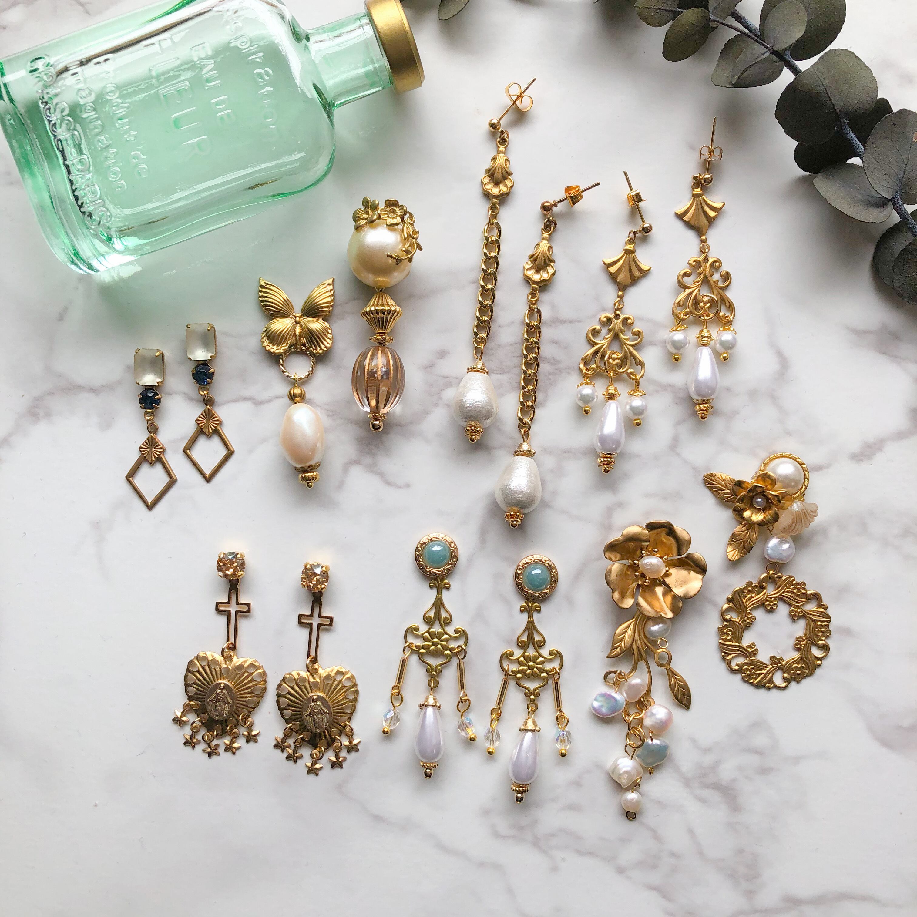 一部にブラスパーツを使用した、クラシカルなデザインのアクセサリーシリーズです。