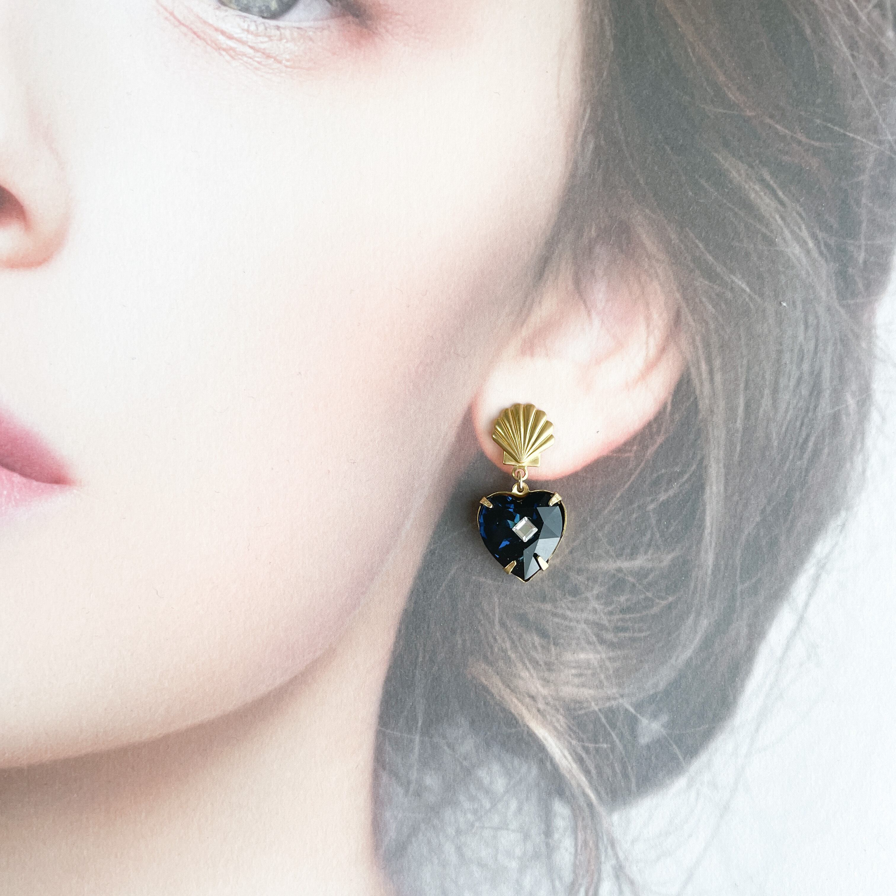 ガラスのハートと真鍮パーツを組み合わせたコラソンモチーフの耳飾り。
